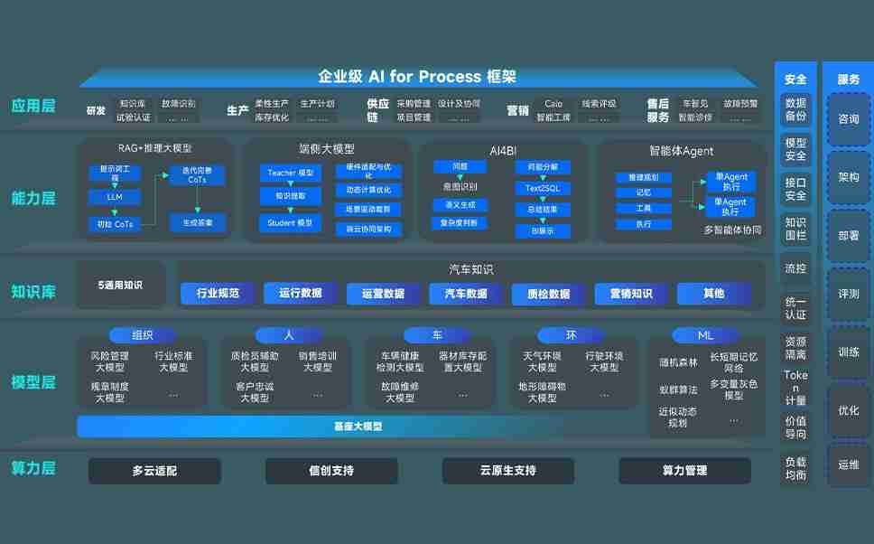 凯时尊龙问学智车解决方案是一套基于AI技术的汽车行业智能化系统,,,覆盖从底层算力到顶层AI应用的全栈方案。。方案由算力层、、模型层和应用层组成:算力层,,方案支持多种一体机配置,,,,具备云端灵活部署、、、多云适配以及动态优化计算资源的能力;模型层,,,,凯时尊龙问学平台版提供了企业级AI应用一站式构建与管理平台,,,支持基于后训练强化技术的汽车企业专属模型的训练、、、评测和运营;应用层,,,凯时尊龙问学DeepSeek版提供包括超级员工、、智能招采、、、、智能营销、、、智能客服、、、、AI for BI等一系列解决方案,,,可助力汽车行业实现数字化转型,,让管理更智能、、响应更敏捷。。。。
